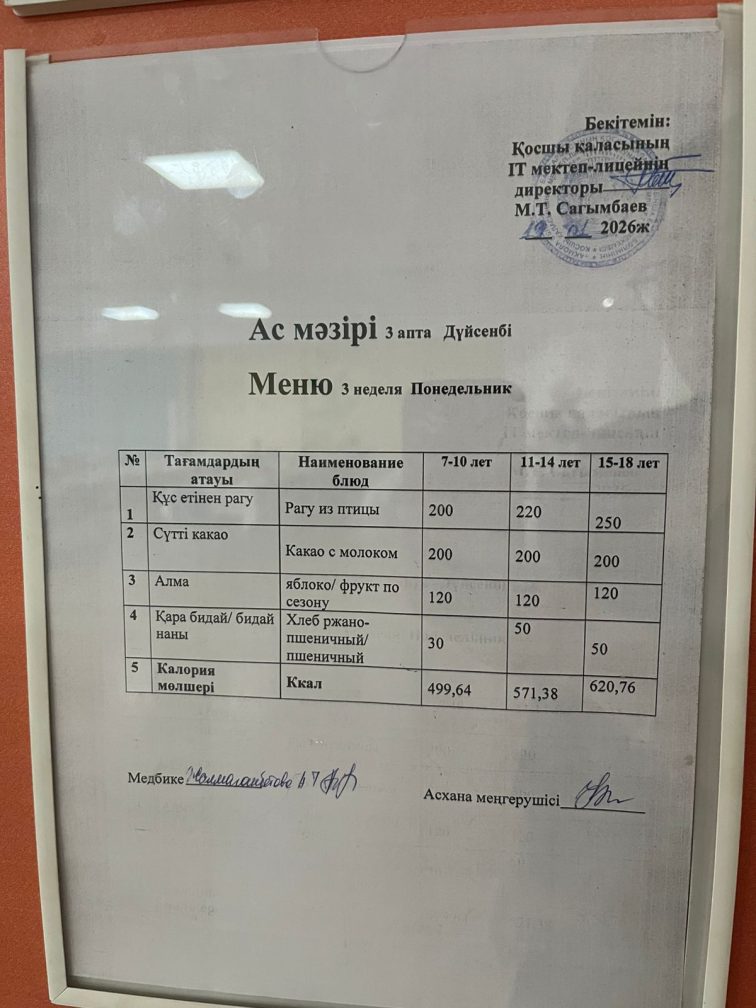 19.01.2026 күнгі ас мәзірі