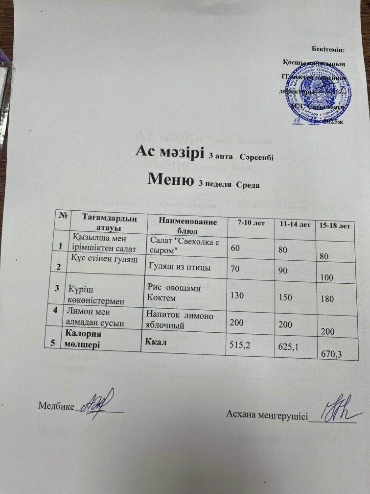 19.11.2025 күнгі ас мәзірі