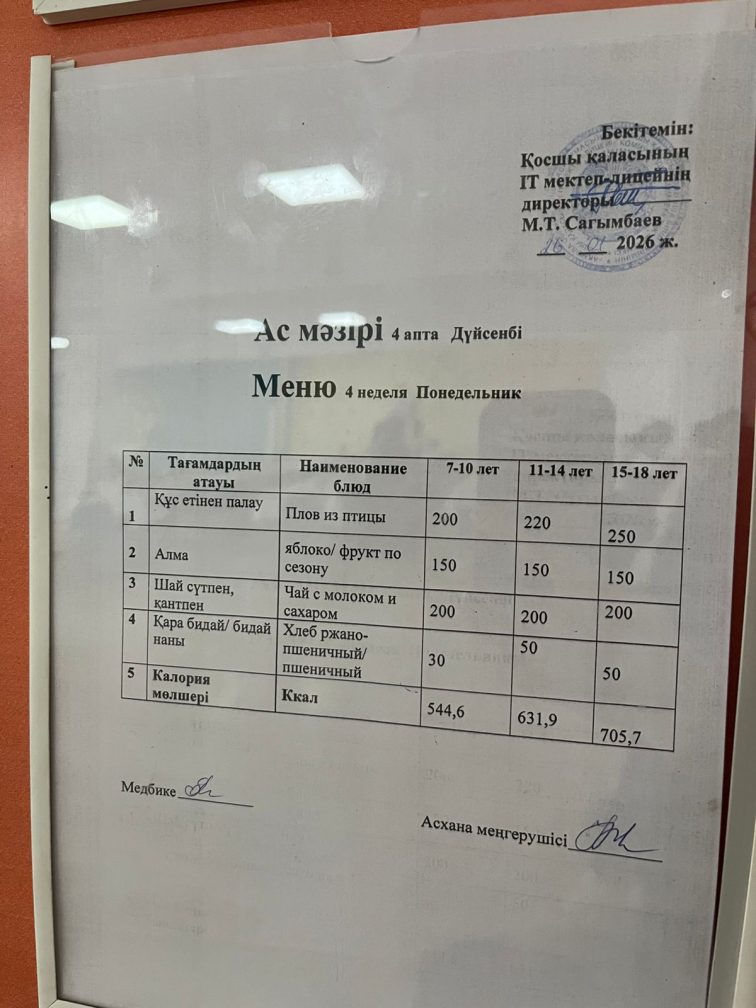 26.01.2026 күнгі ас мәзірі