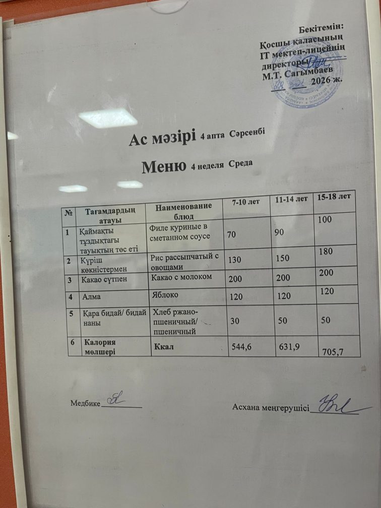 28.01.2026 күнгі ас мәзірі