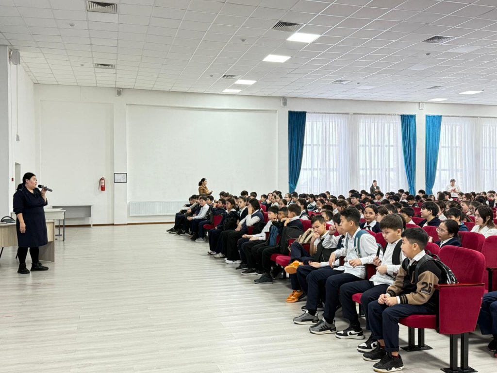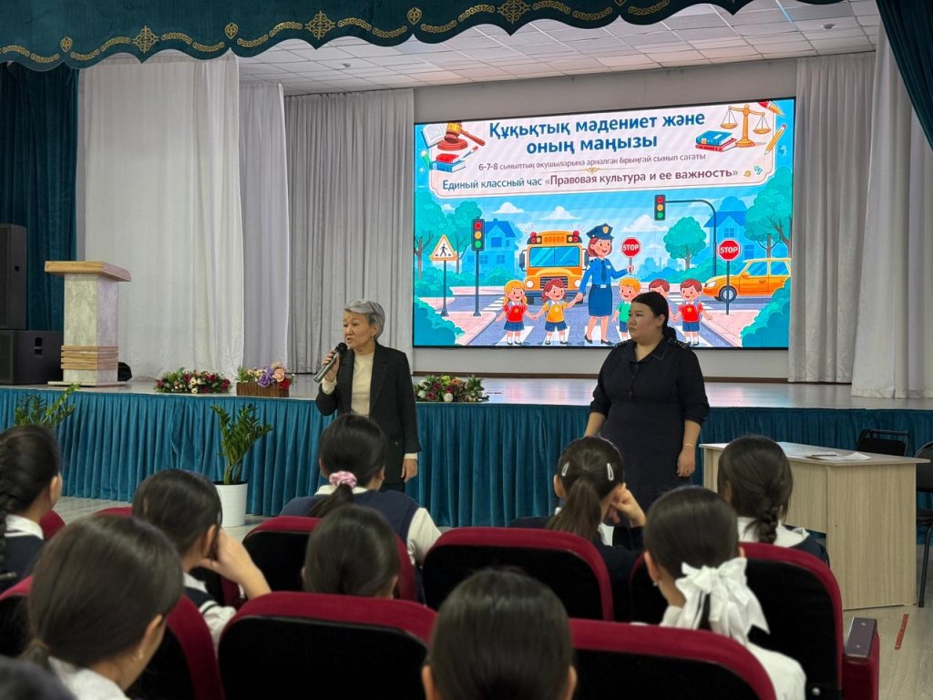 Білім алушылардың құқықтық сауаттылығын арттыру, заңға құрметпен қарау мәдениетін қалыптастыру және құқықбұзушылықтың алдын алу мақсатында мектепте біріңғай сынып сағаты өткізілді.