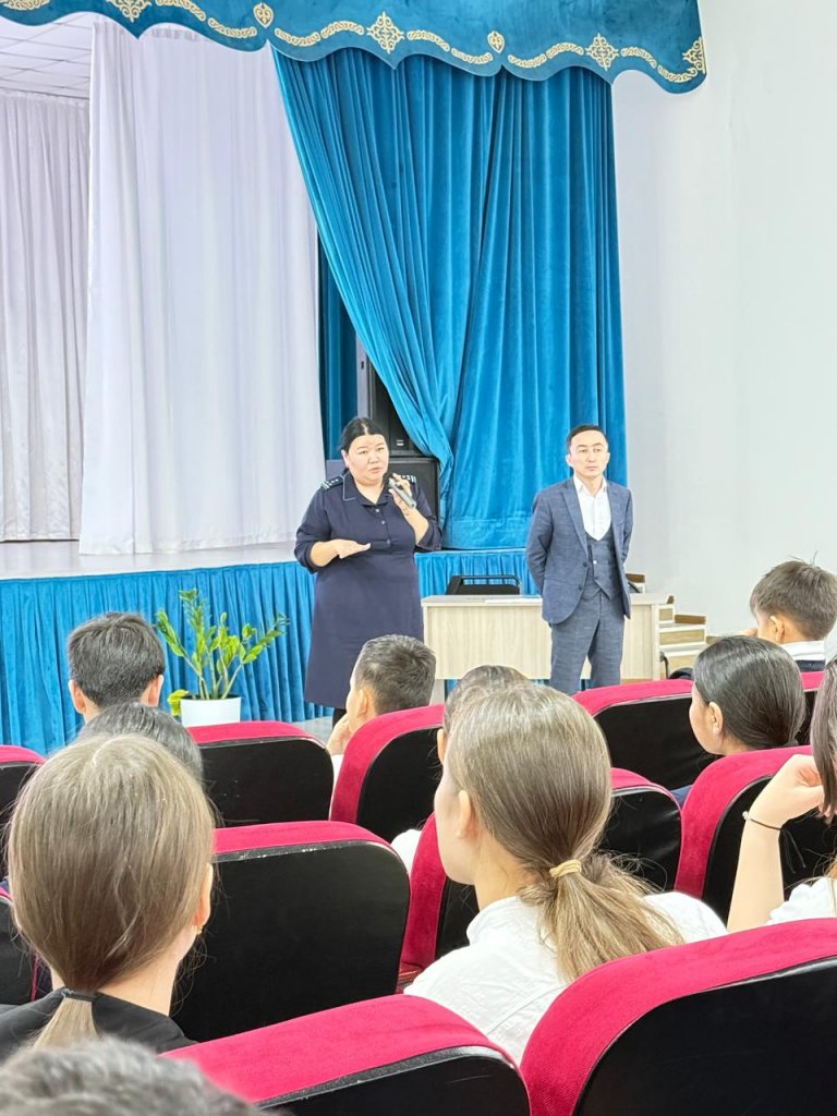 Іс-шара аясында құқық қорғау органдарының қызметкерлерімен кездесу ұйымдастырылып, оқушыларға құқықтық жауапкершілік, кәмелетке толмағандардың құқықтары мен міндеттері, заң талаптарын сақтау туралы мазмұнды ақпарат берілді.